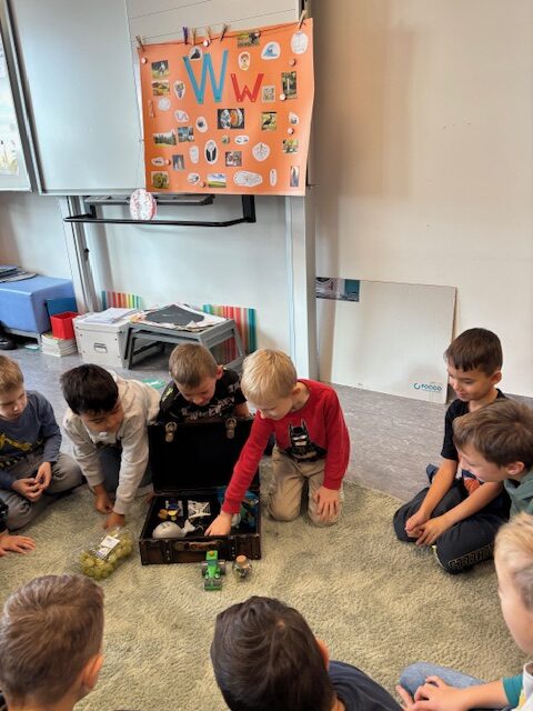 Dabei wurde unser Buchstabenkoffer mit vielen Gegenständen gefüllt und auch stolz präsentiert. Ein besonderes Highlight war der Besuch von zwei Wellensittichen, die einen ganzen Vormittag beim Lernen dabei sein durften und für große Freude sorgten. So macht Lernen Spaß!