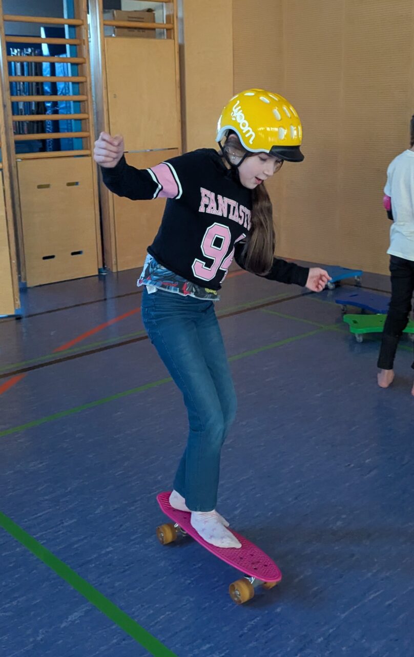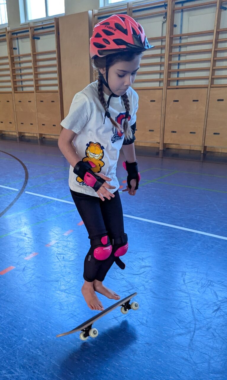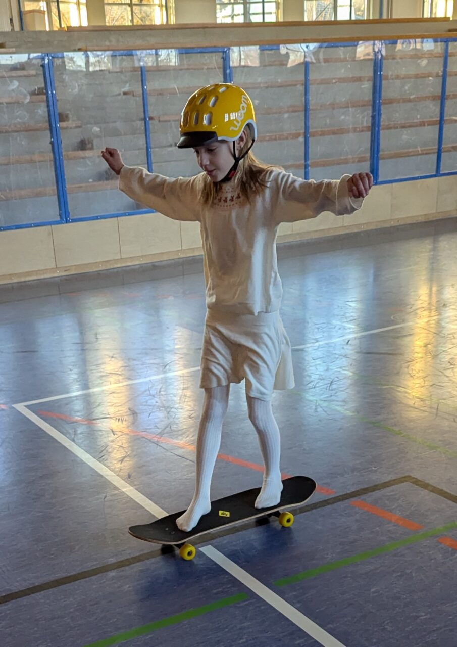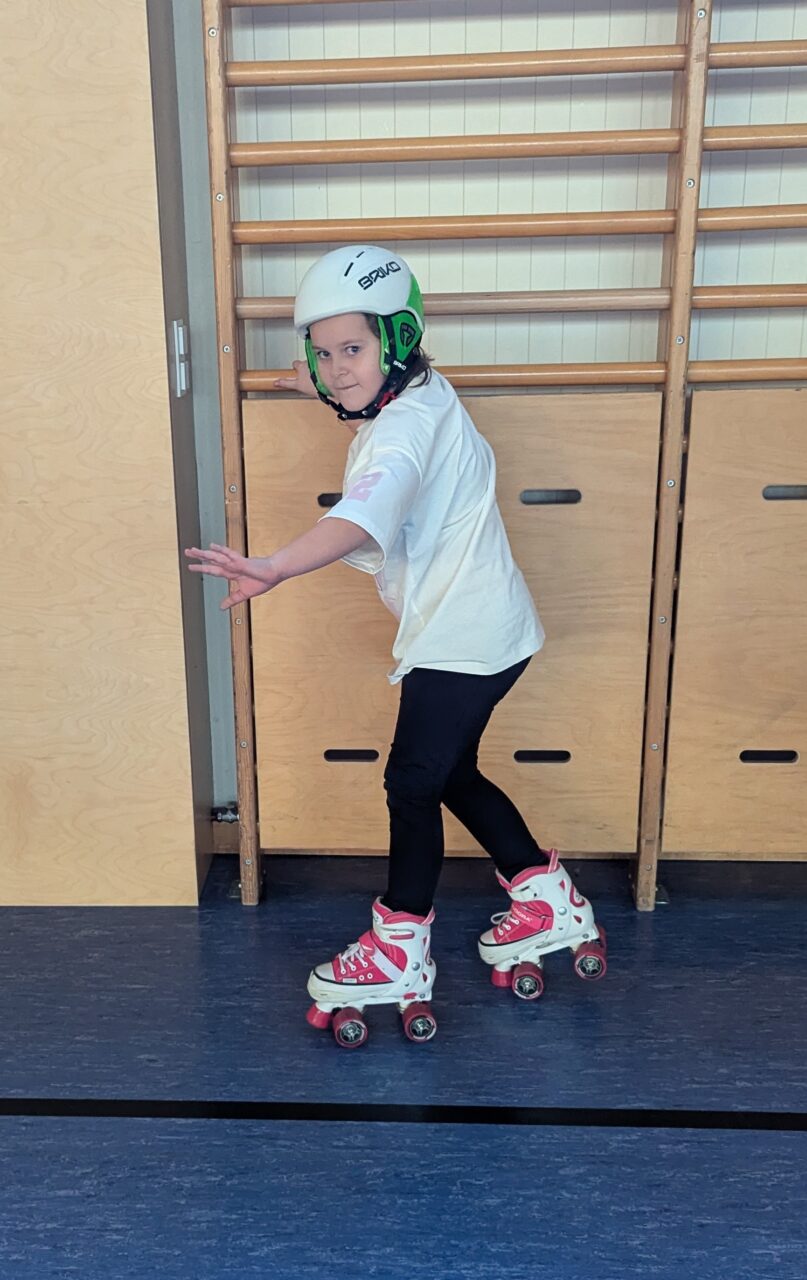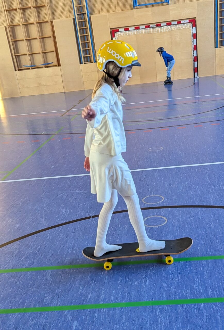 Skateboards, Rollschuhe und Inline Skates kamen zum Einsatz, um einmal eine etwas andere Turnstunde zu haben und das Gleichgewicht zu trainieren. So schön zu sehen, wie die Clownfische zusammenhalten, borgen und tauschen. Das wird mit Sicherheit wiederholt!