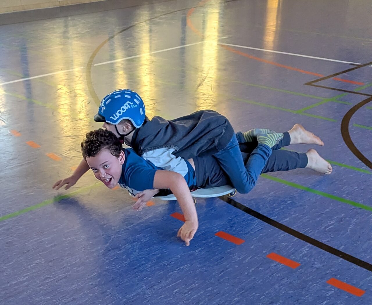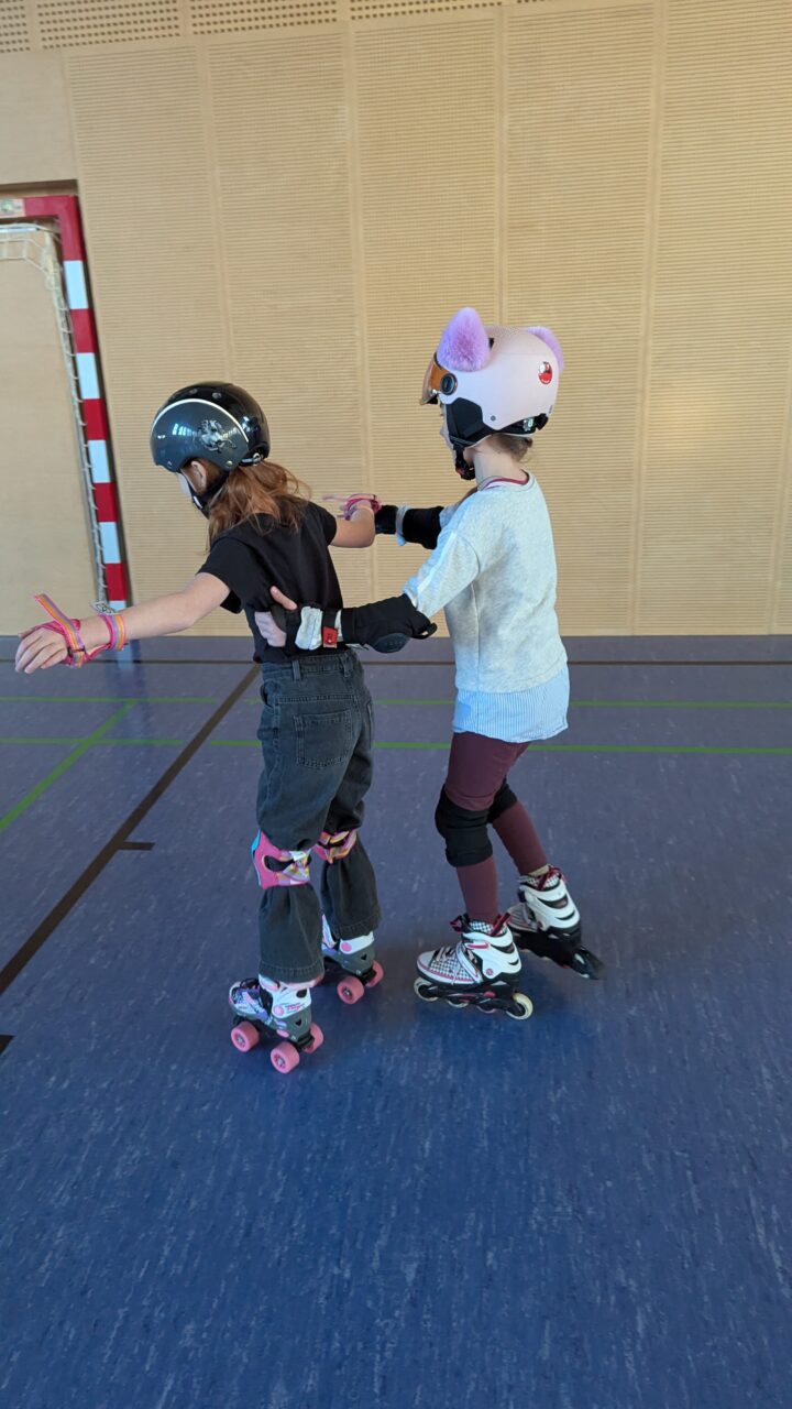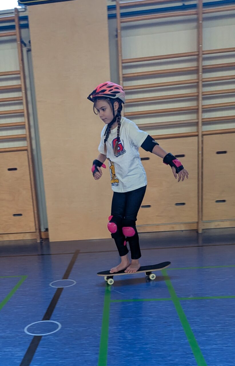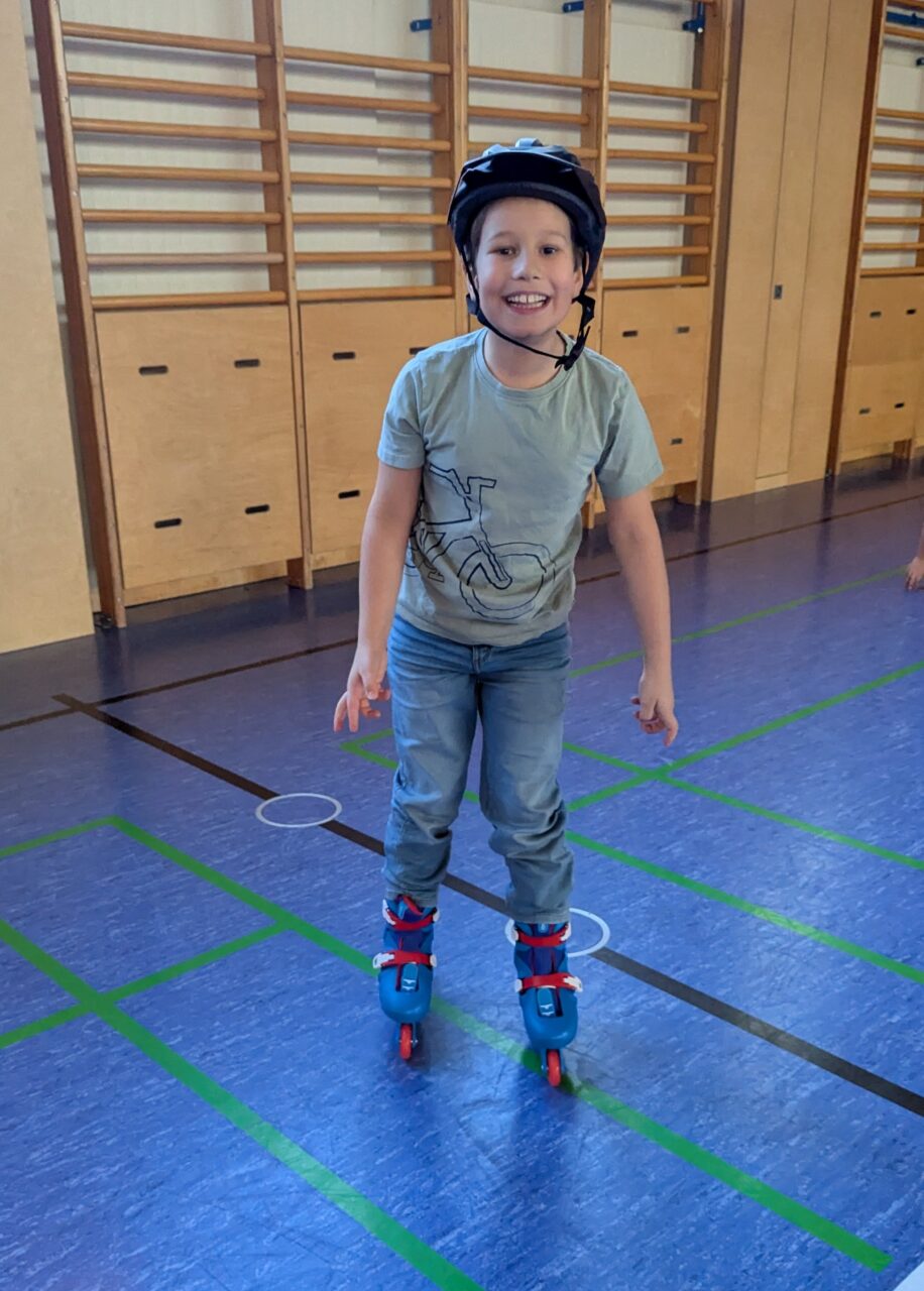 Skateboards, Rollschuhe und Inline Skates kamen zum Einsatz, um einmal eine etwas andere Turnstunde zu haben und das Gleichgewicht zu trainieren. So schön zu sehen, wie die Clownfische zusammenhalten, borgen und tauschen. Das wird mit Sicherheit wiederholt!