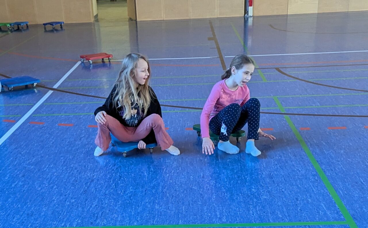 Im Jänner wurde der Turnsaal für die 3a zur „Rollerbahn“.